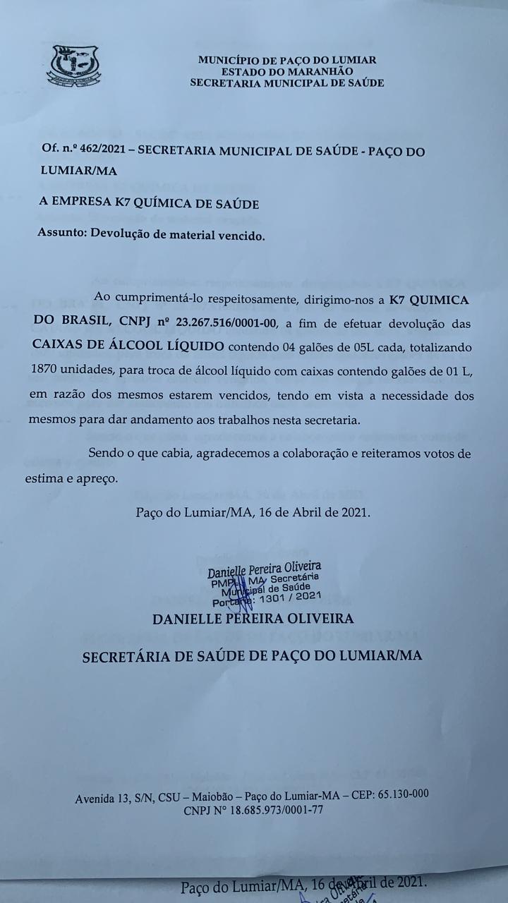 O primeiro exemplo era a forma descompromissada como a ex-secretária de Saúde Soraya Santana tratava a Saúde em Paço do Lumiar. A ex-gestora comprou álcool em gel em quantidade demasiada, sem nenhum planejamento efetivo de uso, o que resultou no fim da validade do produto antes de ser usado.