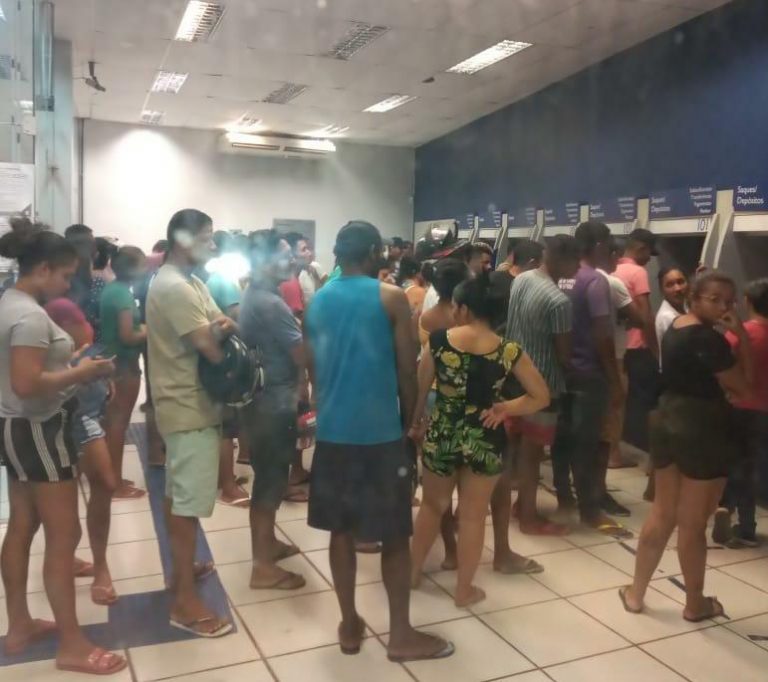 Fotos compartilhadas nas redes sociais mostram que a população simplesmente mandou o Covid-19 pro inferno. Ficou claro que a preocupação de todos era em receber o dinheiro, mesmo correndo o risco de saírem de lá infectados.