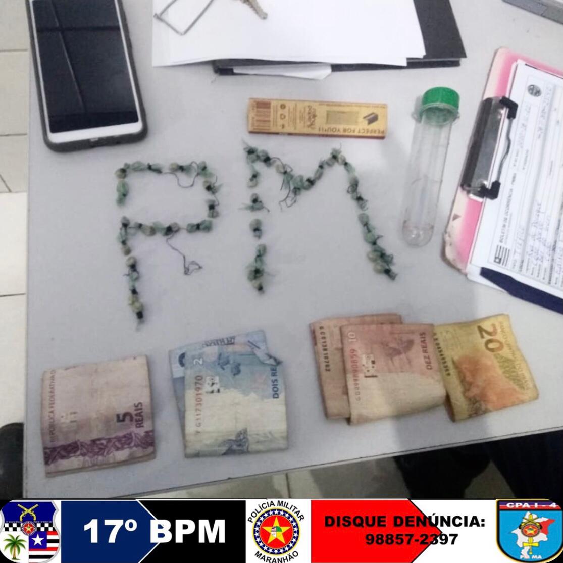 Os indivíduos estavam em um bar no bairro Codó Novo e escondiam o material em um recipiente onde foram aprendidas 35 (trinta e cinco) “cabeças” de crack e 49 (quarenta e nove) reais em dinheiro.