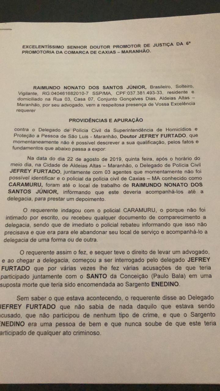 Veja no vídeo abaixo que o vigilante Raimundo Nonato dos Santos Júnior conta com detalhes a linha de atuação de um dos delegados responsáveis pelas investigações contra os militares, trata-se do delegado Jefrey Furtado, cuja acusação é a de ameaça, violência psicológica, entre outras.