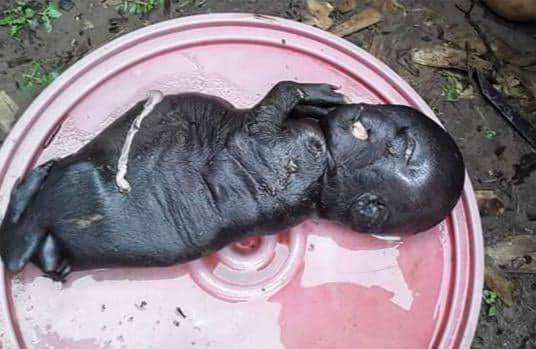 Um filhote de porco, teria nascido com uma má formação e com aparência de uma criança recém nascida. De acordo com informações o animal teria dado à luz à quatro filhotes. O que nasceu com deformações estava sem vida.
