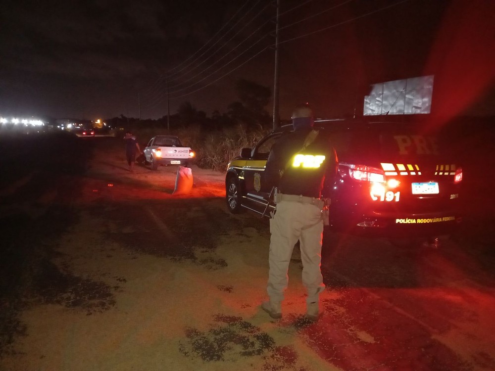 Segundo a Polícia Rodoviária Federal (PRF), o homem estava coletando soja que tinha caído de uma carreta momentos antes. Ele foi preso enquanto colocava os sacos em uma carroceria de uma picape, e outros comparsas conseguiram fugir.