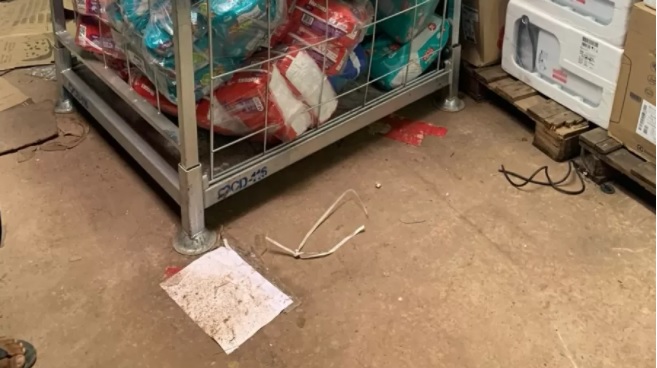 As imagens da câmera de segurança do supermercado flagram a abordagem de um segurança no momento em que o homem deixava o supermercado. Ele foi conduzido por uma escada até o setor de gerência do supermercado. Lá, foi fotografado e levado ao almoxarifado.