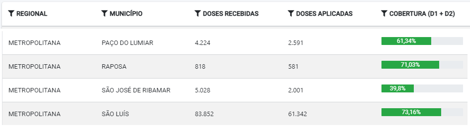 Na grande Ilha, apenas o município de São José de Ribamar não cumpriu a meta de 60%, e segue sem poder receber novas doses.
