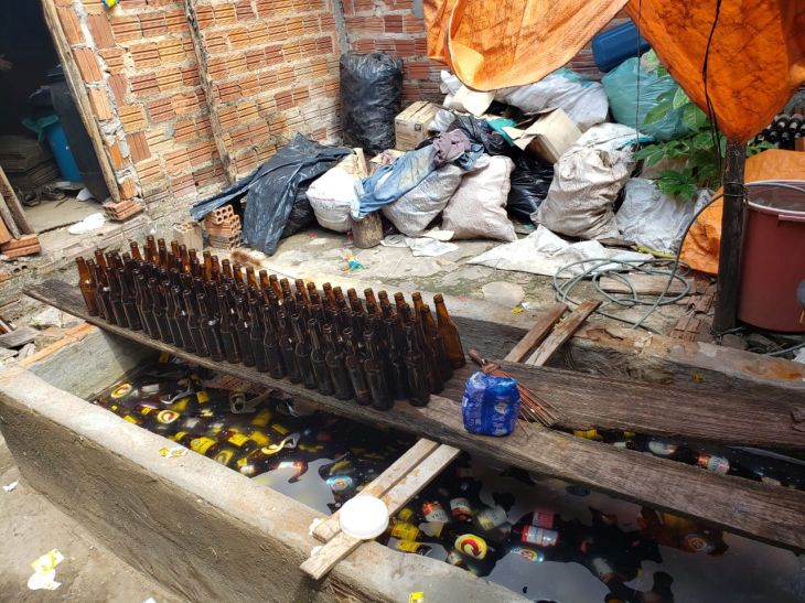 A polícia apreendeu mais de 3 mil rótulos falsos, carimbo com datas únicas de fabricação e validade, tampas para garrafas, anotações de quantidades, além centenas de garrafas vazias, e líquido já pronto, que foi recolhido para perícia pelos peritos do Icrim Timon.