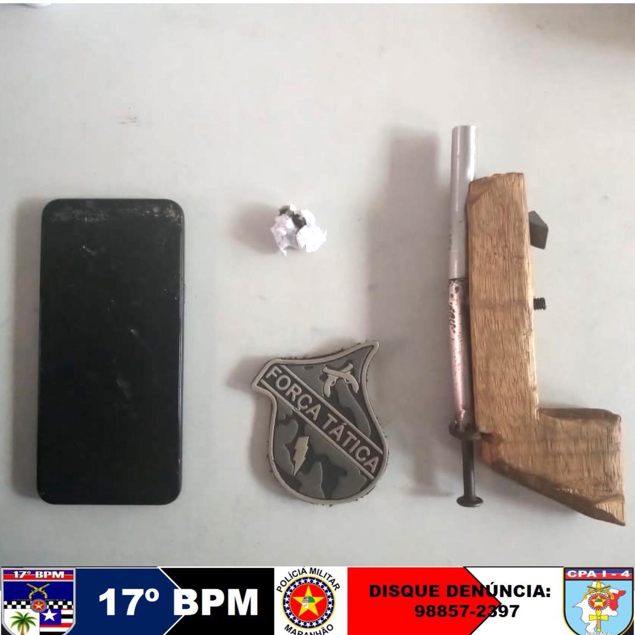 Também foi encontrada uma arma de fogo cal.32 de fabricação caseira. Os três indivíduos foram conduzidos à Delegacia de Codó juntamente com o material encontrado em poder dos mesmos.